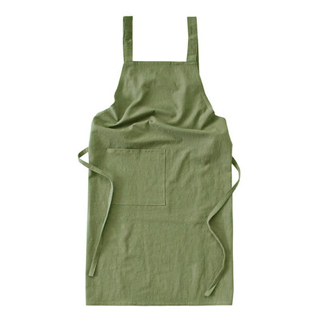 Green Cotton Linen H-Back Apron - Solid Color Kitchen Cooking Apron with Pocket