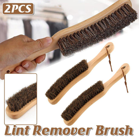 2PCS Wooden Handle Horsehair Clothes Brush Dust Remover Household Cleaning Brush