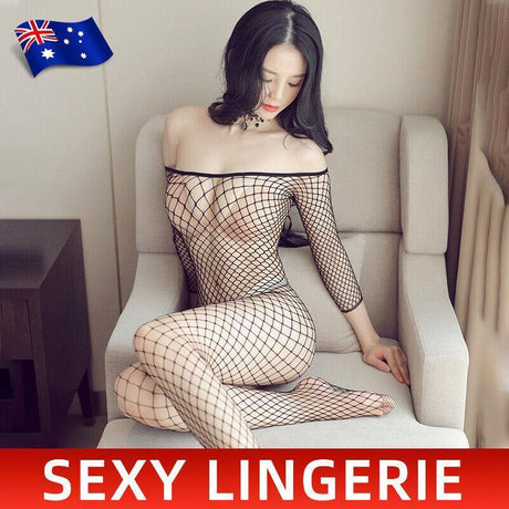 Alluring Lingerie Nightwear Women Open Crotch Fishnet Body Stocking Bodysuit Black