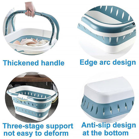 Large Folding Laundry Basket Plastic Dirty Clothes Hamper Blue Bathroom Storage - Blue