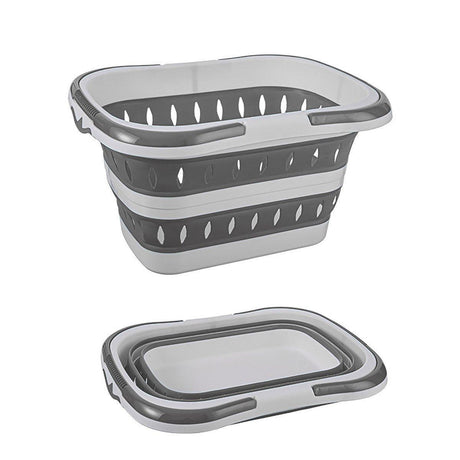 Large Folding Laundry Basket Plastic Dirty Clothes Hamper Blue Bathroom Storage - Grey