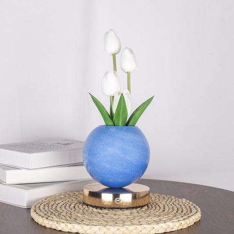 White tulips LED Crystal Flower Table Lamp - USB Rechargeable Touch Control Night Light