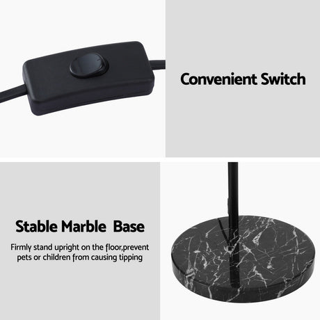 Artiss Modern Arched Floor Lamp Black Standing Heavy-Duty Marble Base for Living Room Bedroom