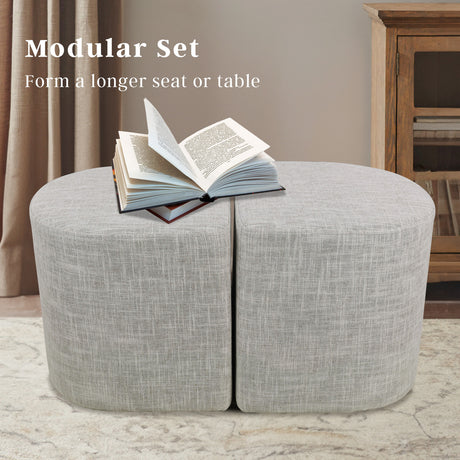 2X Ottoman Stool Linen Fabric Footstool Foot Rest Pouffe Pouf Seat - Cream Grey
