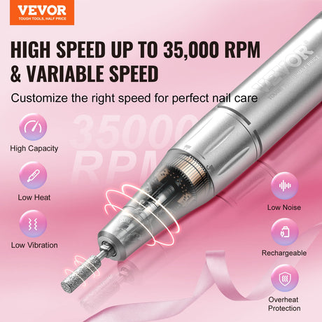 White Portable Electric Nail Drill - Rechargeable, Adjustable Speed, Low Vibration