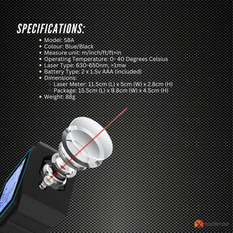 Tooleroo 100m Digital Laser Distance Measurer - LCD Area Volume Meter Tool