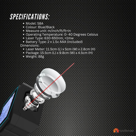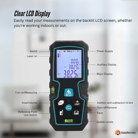 Tooleroo 40m Digital Laser Distance Measurer - LCD Area Volume Meter Tool