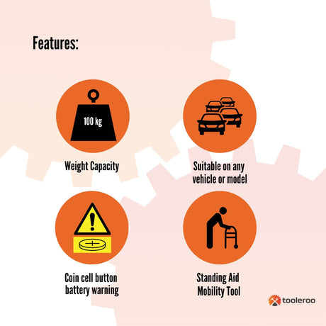 Tooleroo 1x Car Cane Door Handle - Portable Elderly Stand Aid LED light Hammer