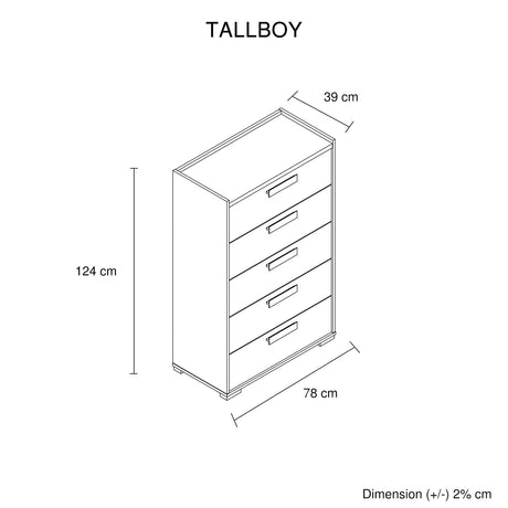 Tallboy with 5 Storage Drawers MDF Combination of Black & Cement Colour