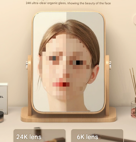 Square Rotating Mirror Tabletop Makeup Mirror - Large Wooden Swivel Vanity Mirror for Desk
