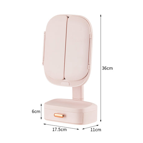 Pink LED Lighted Tri-Fold Makeup Mirror with Storage Drawer & Magnification(USB Charging Port)