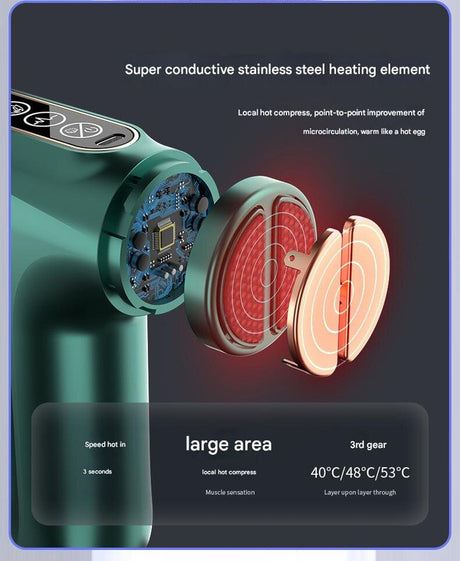 Green Heated Mini Fascia Massage Gun - LCD Display, Muscle Recovery Tool, 32 Adjustable Levels