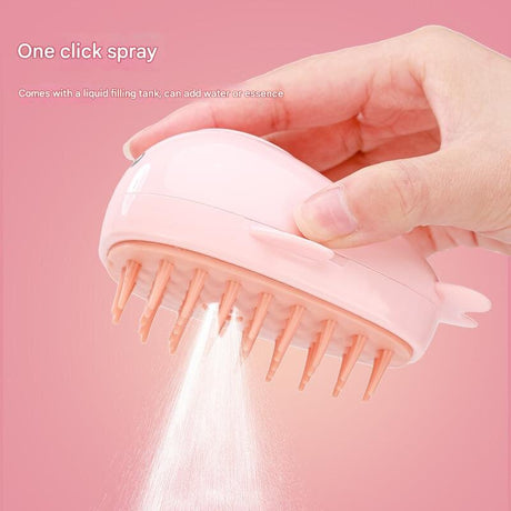2 PCS Pink Cat Paw Electric Pet Brush | One-Click Spray, Massage, & Hair Removal