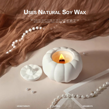 (English Pear Freesia)Ceramic Pumpkin Candle with Lid - Home Decor and Gift Ideas