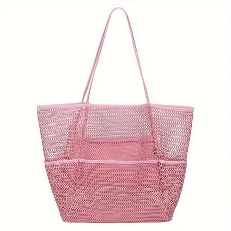 Pink Double Layer Mesh Beach Bag - Large Capacity
