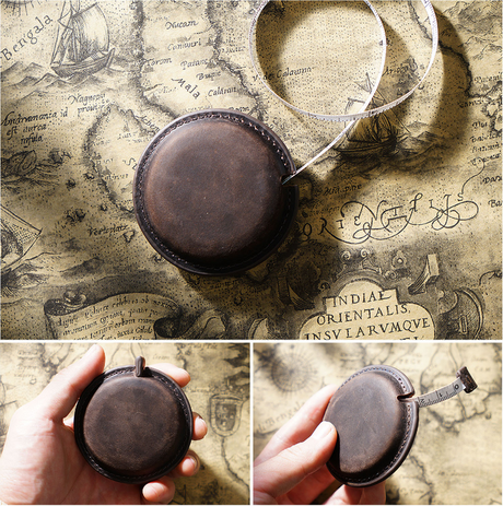Brown Mini Leather Tape Measure - 1.5m/60in - Round With Hook And Pattern