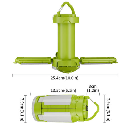 Green Foldable LED Camping Lantern with 6 Modes & Type-C Output - 48LED, IPX4 Waterproof, 3 Styles
