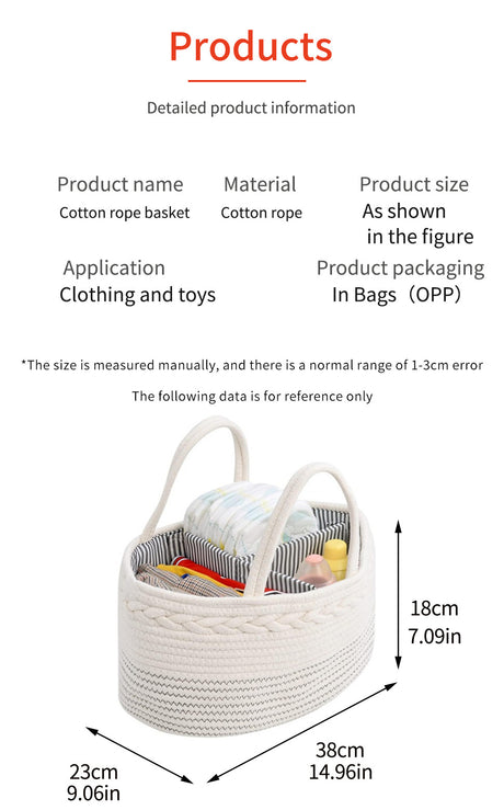 White Stylish Cotton Rope Basket for Clothing & Toys - Woven Storage Organizer, 38x23x18cm