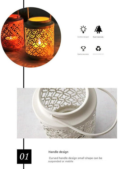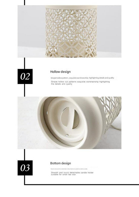 White Vintage Style Candle Lantern - Iron Tabletop Centerpiece for Home Decor