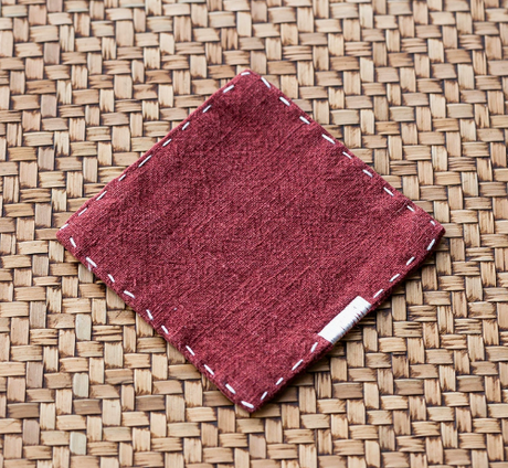 Purple Red Chinese Style Linen Coasters - Set of 4, Hand-Embroidered Tea Mats (9x9cm)