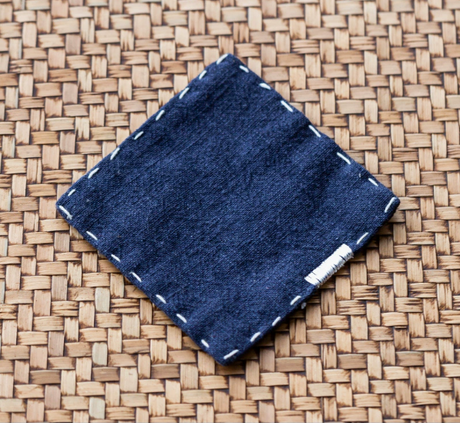 Navy Blue Chinese Style Linen Coasters - Set of 4, Hand-Embroidered Tea Mats (9x9cm)