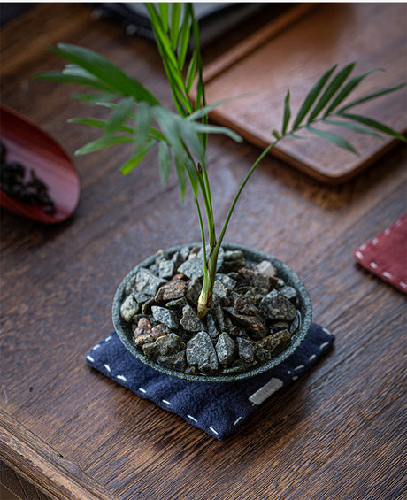 Chinese Style Linen Coasters - Set of 5, Hand-Embroidered Tea Mats (9x9cm)