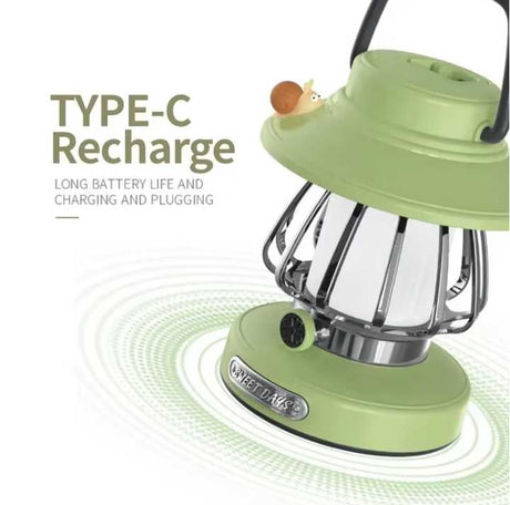 Green Retro Snail Night Light - Portable Rechargeable Camping Lantern with Hook, 3-Color Dimming