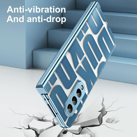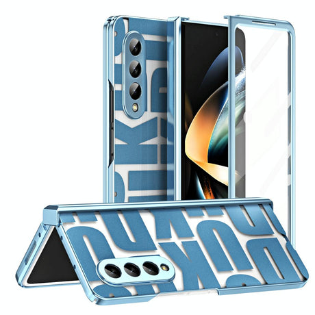 For Samsung Galaxy Z Fold4 5G Foldable Electroplated Phone Case With Hinge - Blue