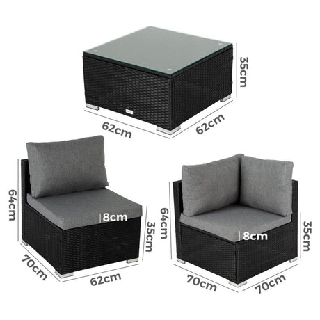 6PCS Outdoor Modular Lounge Sofa Coogee-Black