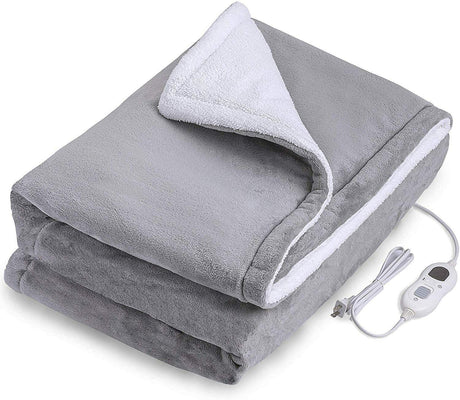 Double-side Flannel Heated Electric Throw Rug Blanket Fast Heating Warm Washable GREY