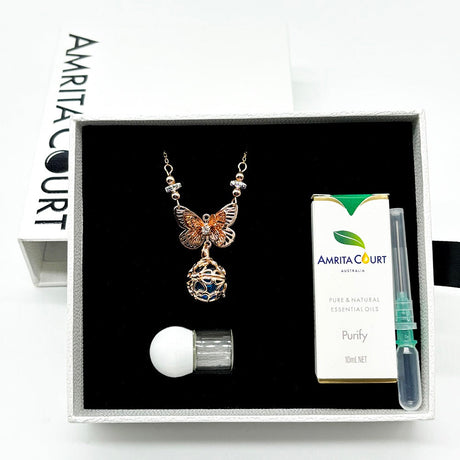Gift Box - Butterfly Rose Gold Aroma Necklace + Purify Oil Blend