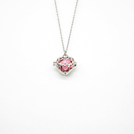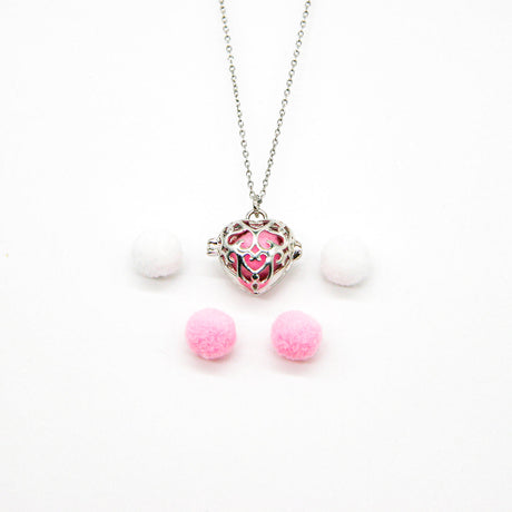 Gift Box - Love Heart White Gold Aroma Necklace + Purify Oil Blend