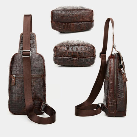 Men Cowhide Crocodile Texture Crossbody Chest Bag One Shoulder Design - Crocodile Pattern