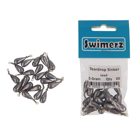 Swimerz 5gm Teardrop Sinker, Lead, 20 pack