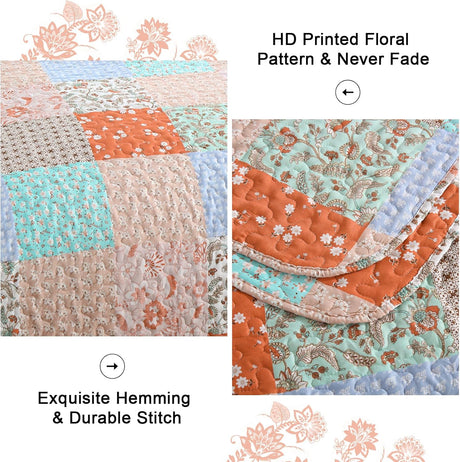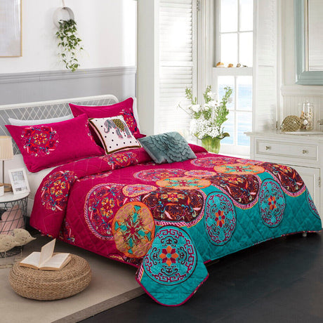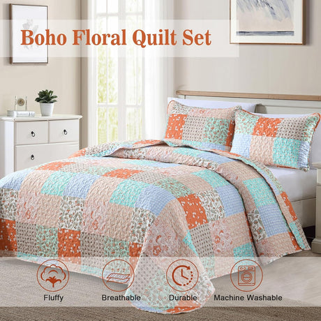 Rusty Boho floral Chic 3 Pc Bedspread & Pillow Cover Set
