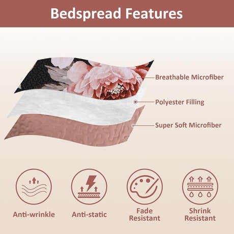 Romantic Wildflower Soft Cozy 3 Pc Bedspread & Pillow Cover Set