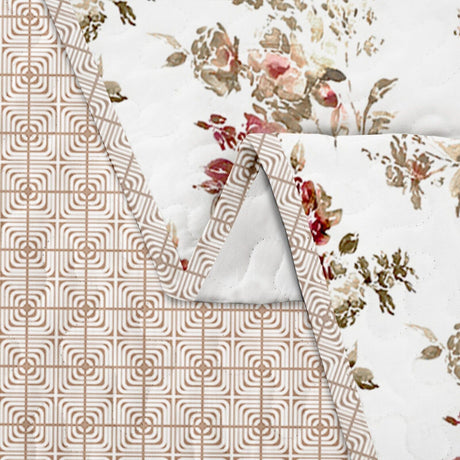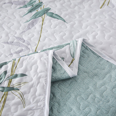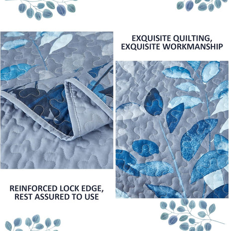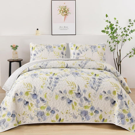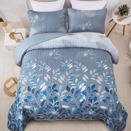 Soft leafey bloom Quilted 3 Pc Bedspread & Pillow Cover Set