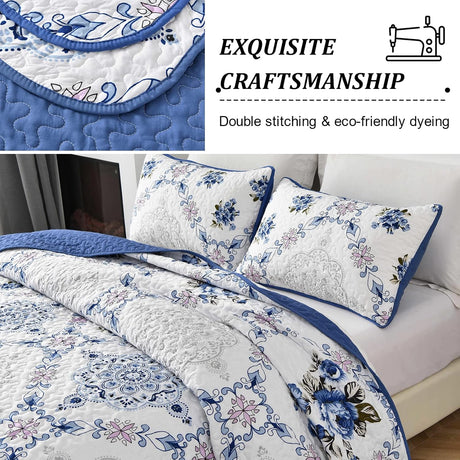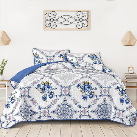 Classic Hydrangea Soft Quilted 3 Pc Bedspread & Pillow Cover Set