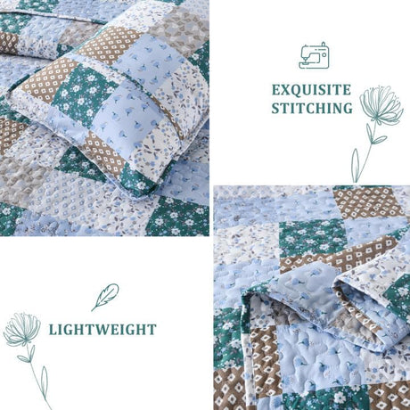 Warm Cozy patchwork greem 3 Pc Bedspread & Pillow Cover Set