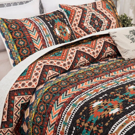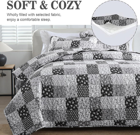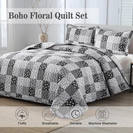 Autumn patchwork B/W Pattern 3 Pc Bedspread & Pillow Cover Set