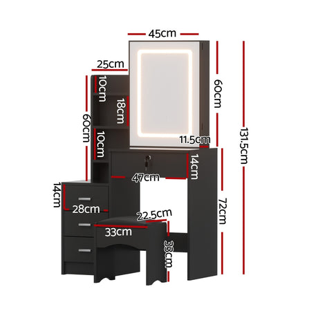 Artiss Dressing Table Vanity Desk Set Stool Led Black