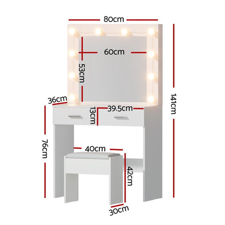 Artiss Dressing Table Vanity Desk Set Stool 10 Led Bulbs White