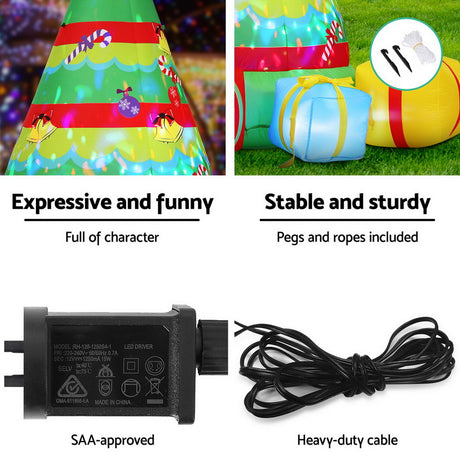 Jingle Jollys Christmas Inflatable Gift Tree 2.2M Height Flashing Light Decorations Illuminated
