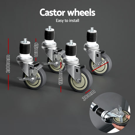 Cefito Stainless Steel Kitchen Benches Work Bench Wheels 91X61CM 430
