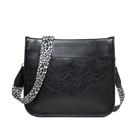 Leopard Print Waterproof Crossbody Tote Bag - Black
