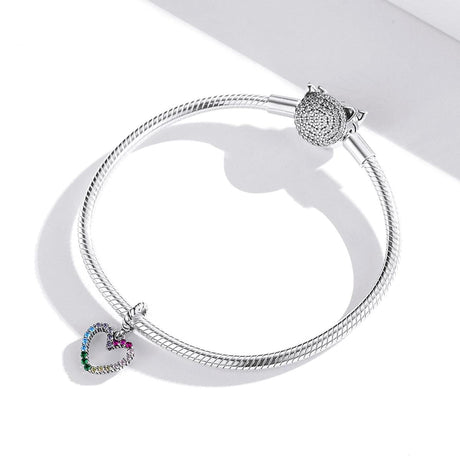 925 Sterling Silver Rainbow Heart Pendant For Diy Bracelets & Necklaces