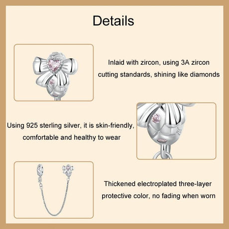 925 Sterling Silver Romantic Bow Safety Chain For Diy Beaded Accessories