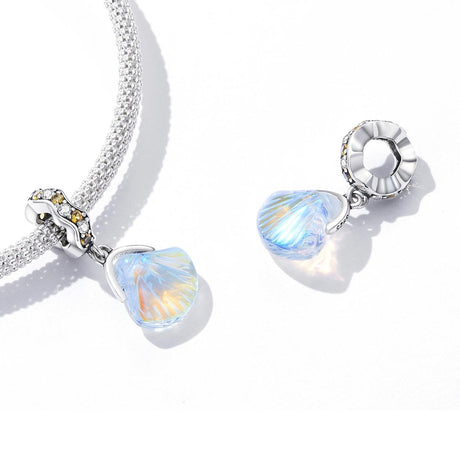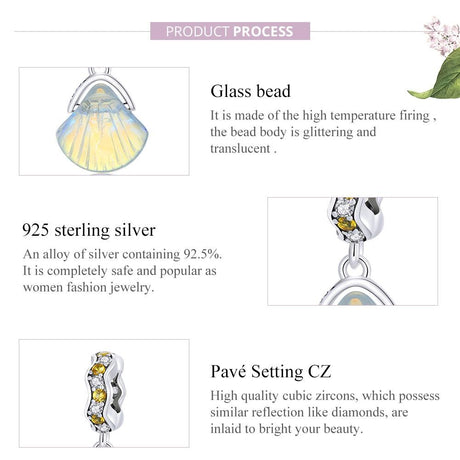 925 Sterling Silver Iridescent Shell Pendant For Diy Bracelet Or Necklace
