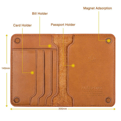 Cowhide Passport Wallet Multifunctional Card Holder Brown