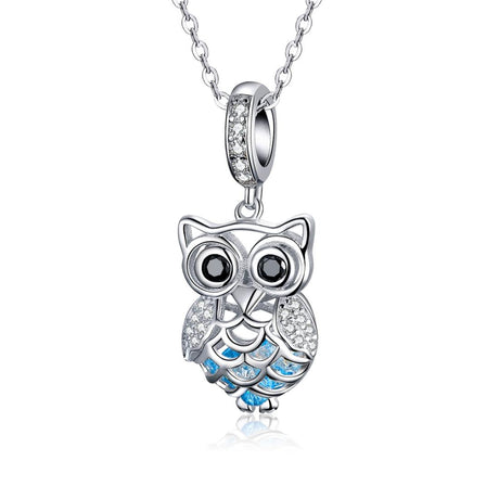 925 Sterling Silver Blue Zircon Owl Pendant For Diy Bracelets Style - Necklace + Pedndant